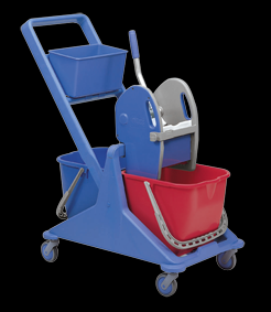 G020229 - CHARIOT SPAZIO 2 X 25 L 2 x 25 Litres435 x 810 x 885 H• Structure polypropylène• 4 roues Ø 80 mm• Angles pare-chocs• Panier porte-produits• 2 seaux de 25 Litres rouge et bleu• Presse classique